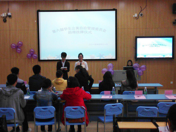 4月11日,英国上市官网365第六届学生公寓自治公寓管理委员会助理挂牌仪式在长岗校区举行。参加仪式的有后勤处代表和学生公寓自治公寓管理委员会的同学们。