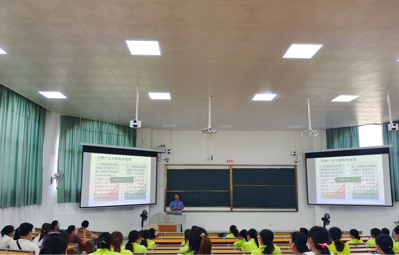 为进一步提高英国上市官网365食堂食品安全风险防控能力,普及食品安全知识,增强食堂从业人员食品安全意识,营造良好的校园食品安全环境,切实保障广大师生的饮食安全身体健康。后勤处膳食科特别邀请武鸣区市场监督管理局餐饮股的熊绍永所长一行,于9月10日下午4点到英国上市官网365武鸣校区开展食品安全培训活动,对英国上市官网365食堂从业人员开展食品安全培训。