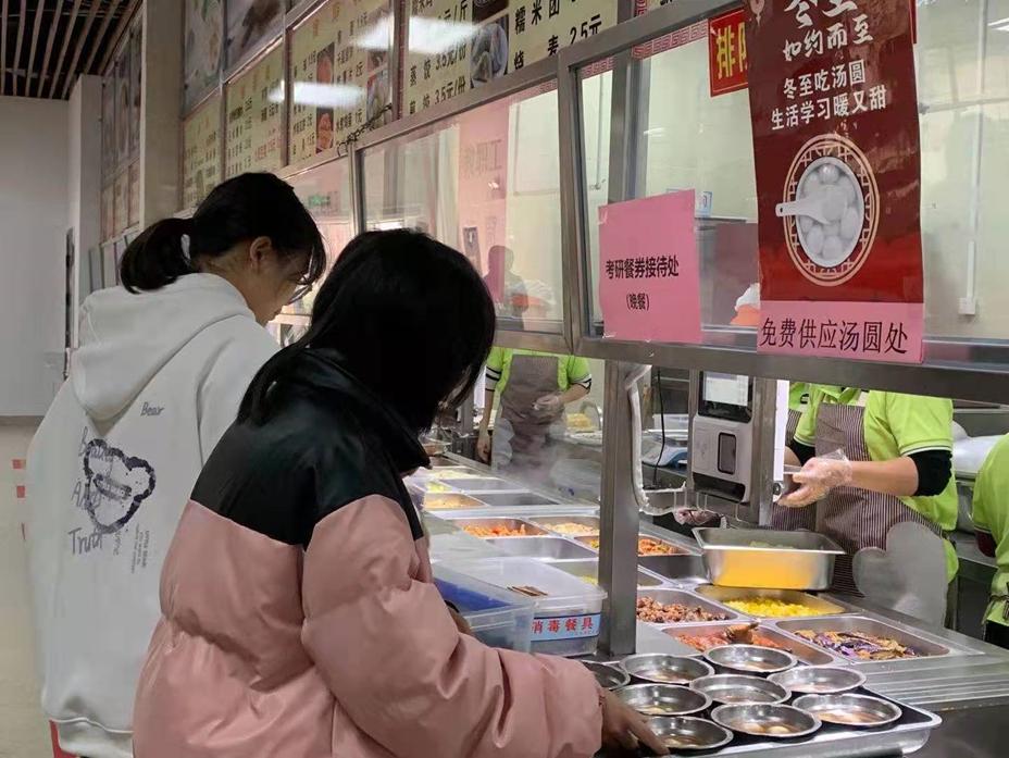 食堂在冬至当日为师生免费送上可口的汤圆,让出门求学的学子们感受到学校如家一样的温暖,体现了学校对全体师生无微不至的关怀,食堂将一如既往地把师生员工的健康饮食放在所有工作的首位,不断为全体师生提供健康美味的食物。