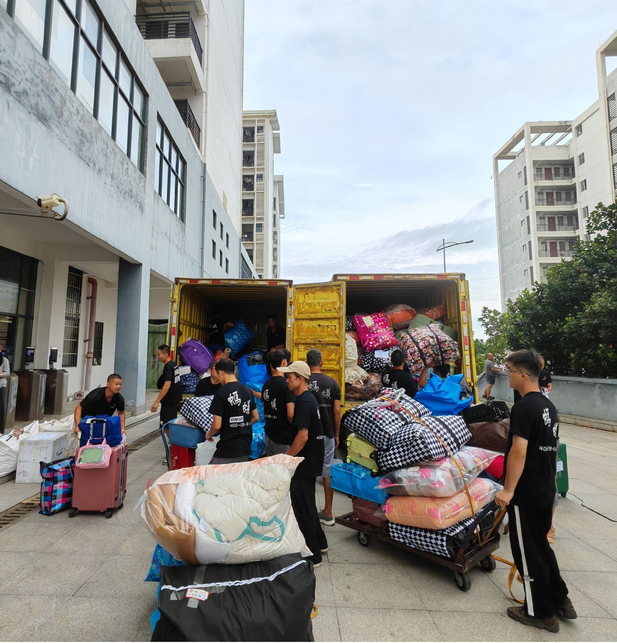 搬迁学院领导不仅现场指挥,还主动帮助学生搬运行李,发现没有贴标签的立马联系学生,亲自帮写好新宿舍号、姓名、联系方式并粘贴牢固……
