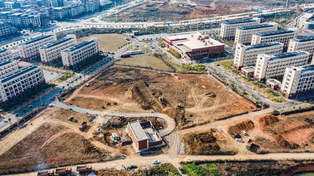 2021年1月12日,武鸣校区二期工程10#、11#学生公寓在平整场地